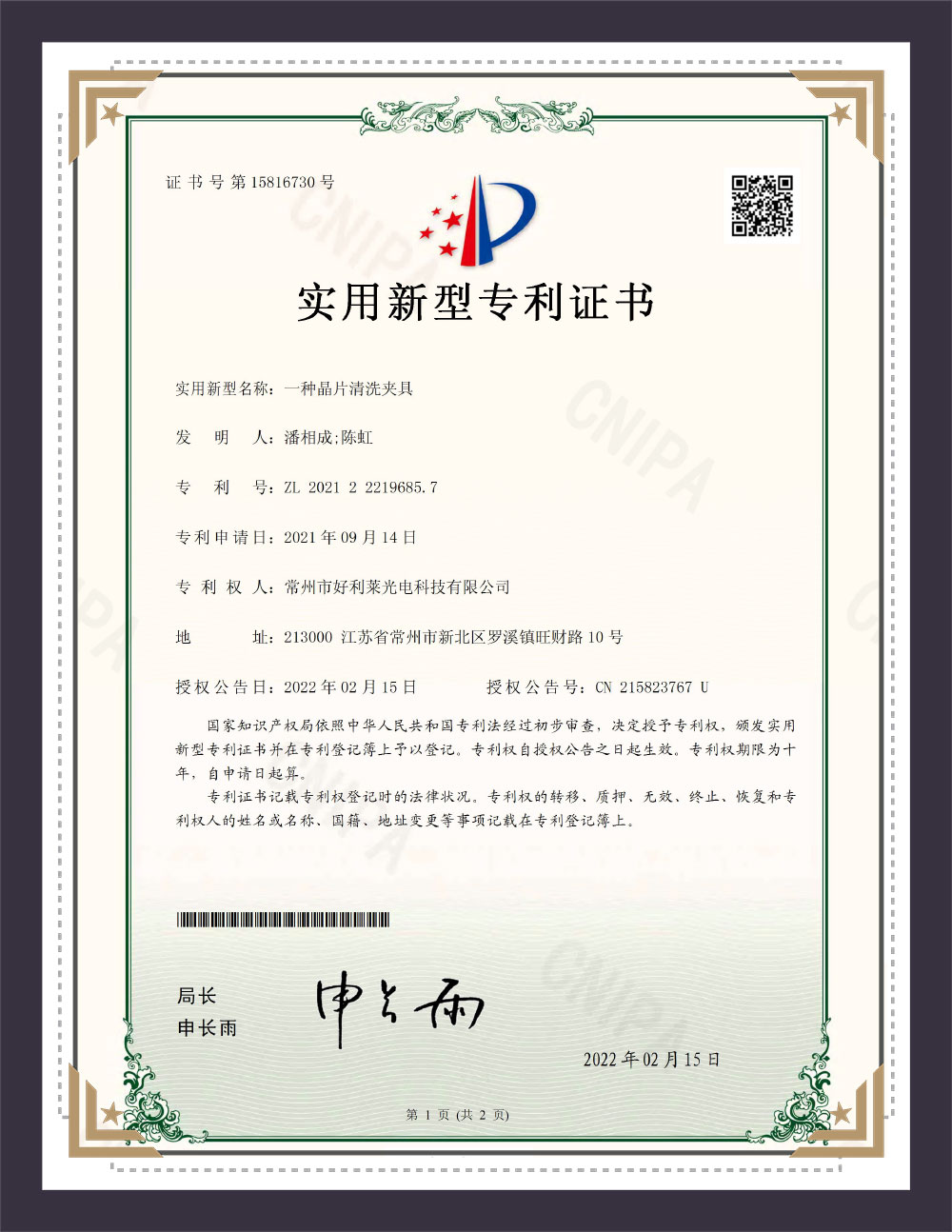 شهادة براءات الاختراع نموذج الأداة المساعدة